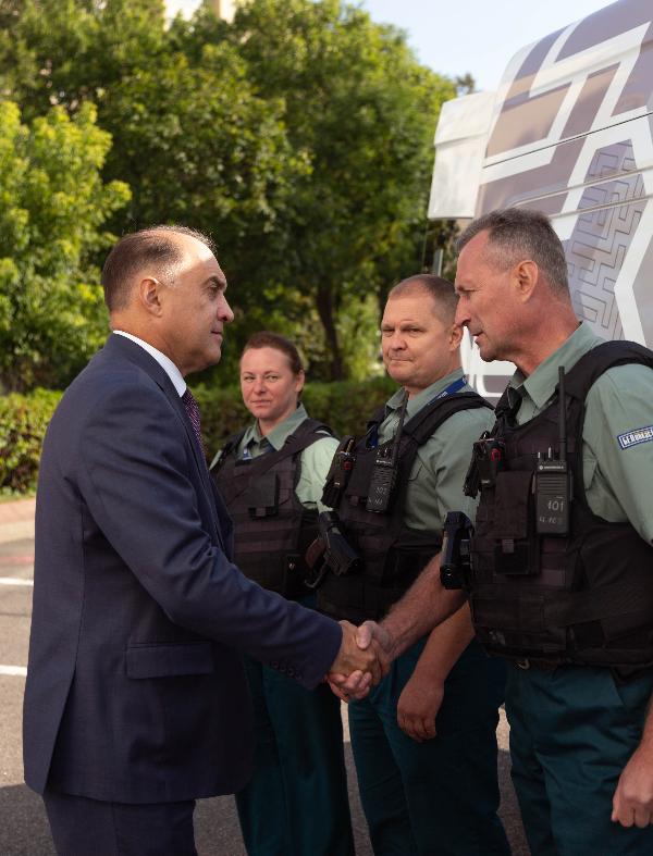 Высшее должностное лицо встретил Председатель Правления НКФО Назаренко А.Е. на демонстрационной площадке центрального офиса организации, где были представлены специальный автотранспорт, оборудование службы инкассации, бригады инкассаторов в полной экипировке, образцы боевого и служебного оружия, используемого в повседневной деятельности инкассаторами, а также отдельное подразделение службы инкассации, выполняющее определенные задачи по охране объектов, сопровождения и обеспечения безопасности физических лиц и транспортных средств в зоне проведения контртеррористических операций.