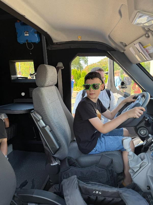 В ответ на радушный прием начальники региональных управлений вручили подарки воспитанникам, рассказали о функциях и задачах инкассаторской компании, об истории создания и традициях НКФО, ответили на вопросы. У ребят была возможность почувствовать себя инкассатором: посидеть в спецавтомобиле и примерить бронежилет.